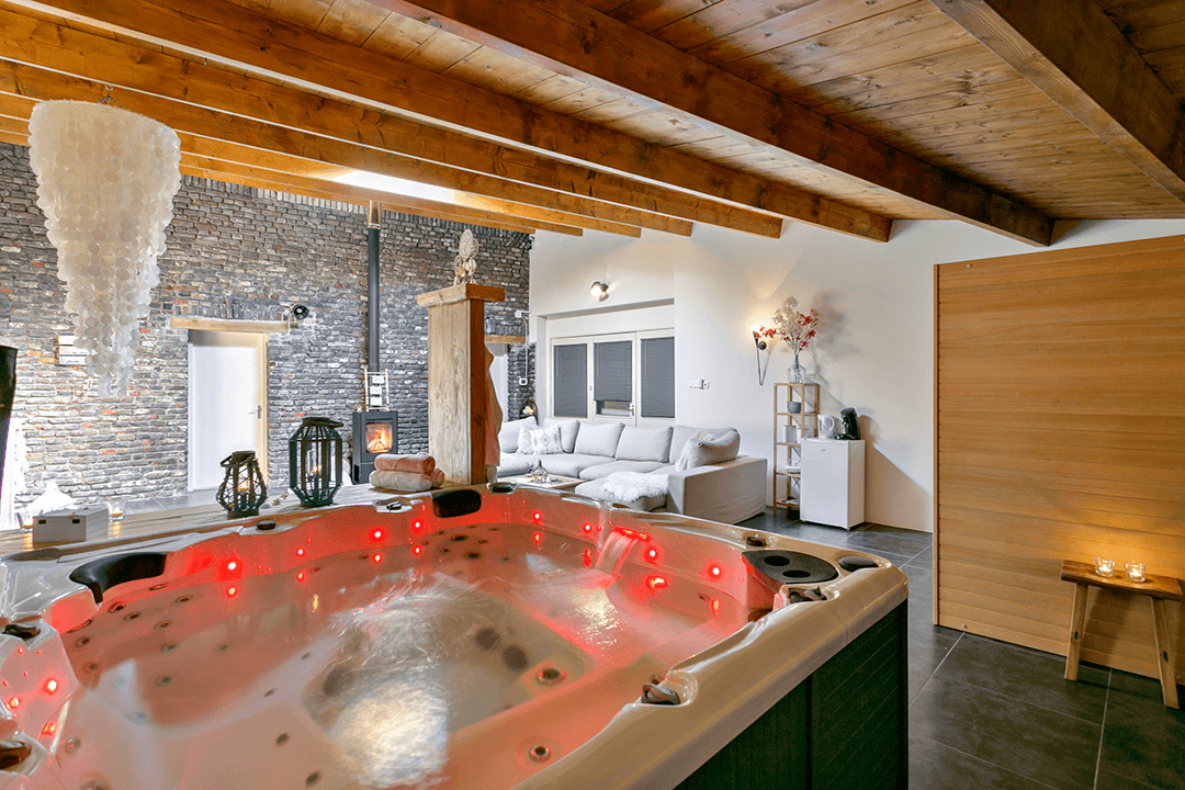 Genieten van een heerlijke privé-wellness, waaronder een sauna en jacuzzi.